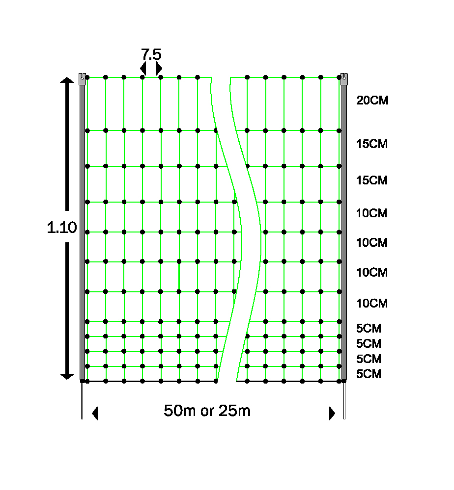 Electric poultry netting is the ideal option for those keeping a small amount of birds in a domestic setting, preferring a solution which can be moved and stored easily and has a low visual impact. The net is mounted on 9 strong PVC posts. Our poultry nets are extremely conductive and are manufactured from polyurethane with metal filaments running through the horizontal strands (apart from the bottom base line).