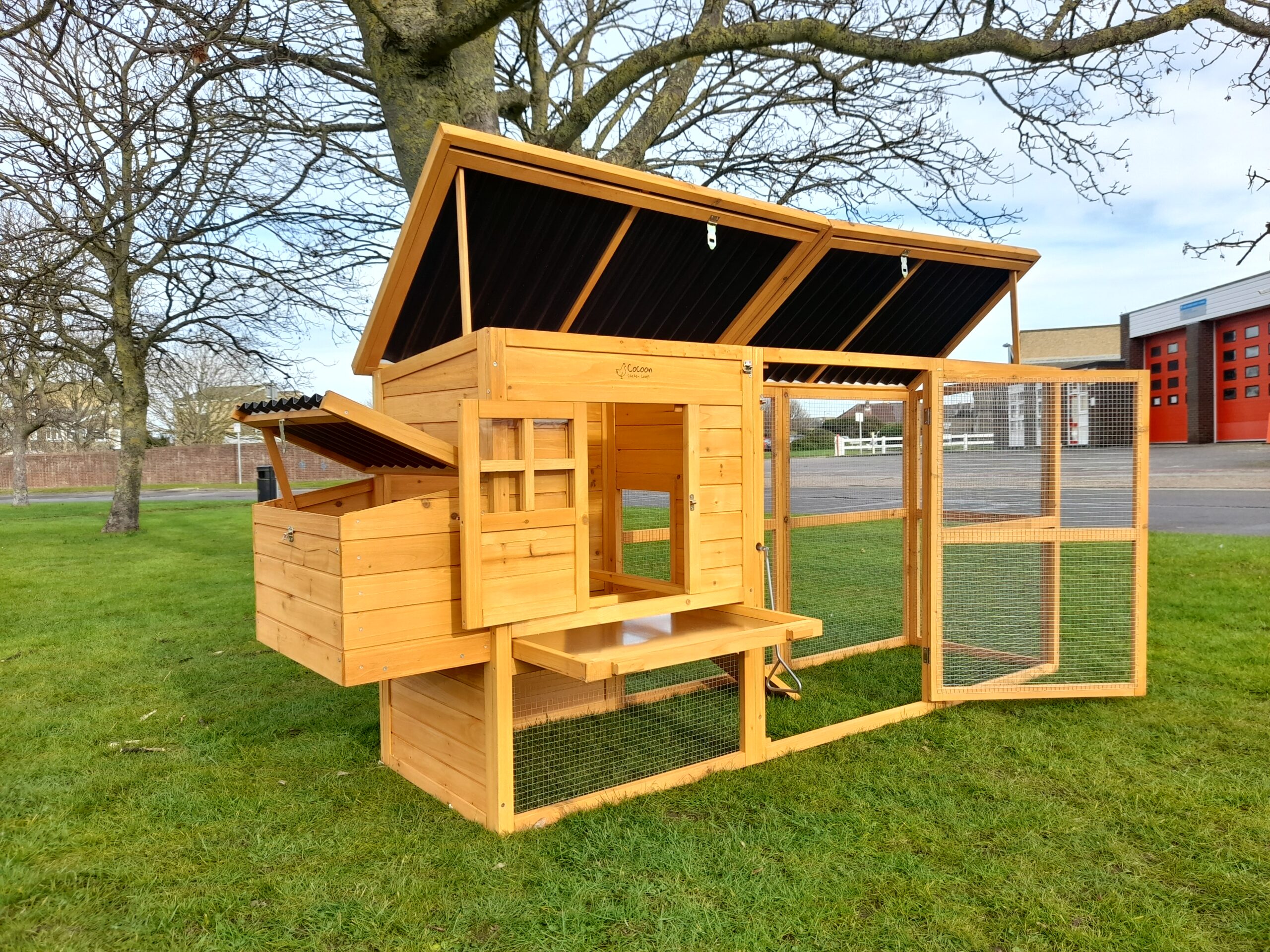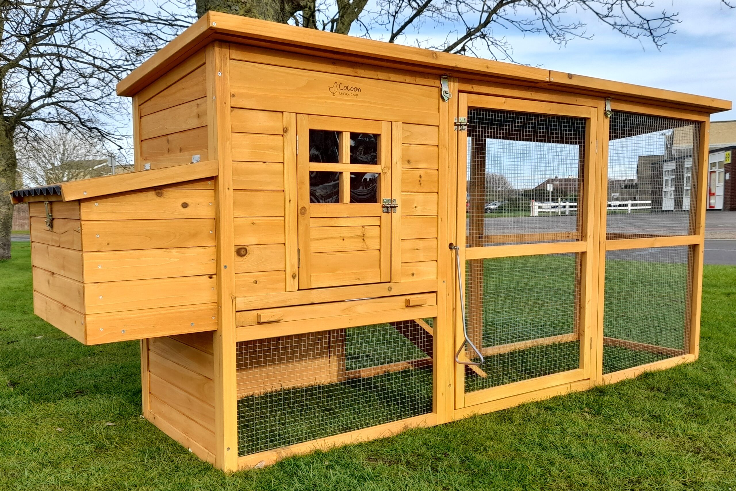 The Cocoon ECO 2500 is a practical and attractive raised chicken coop designed for small to medium flocks. With rot-free plastic roofs, a spacious integrated run, and easy-clean features, this coop offers a secure and low-maintenance home for your birds.