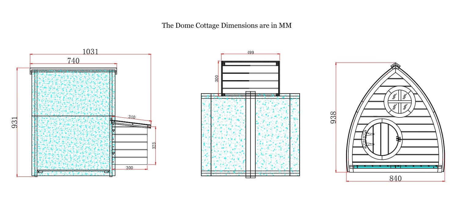 Overall Size (Including Nest Box & Roof Overhangs): 103cm (L) x 84cm (W) x 93cm (H)